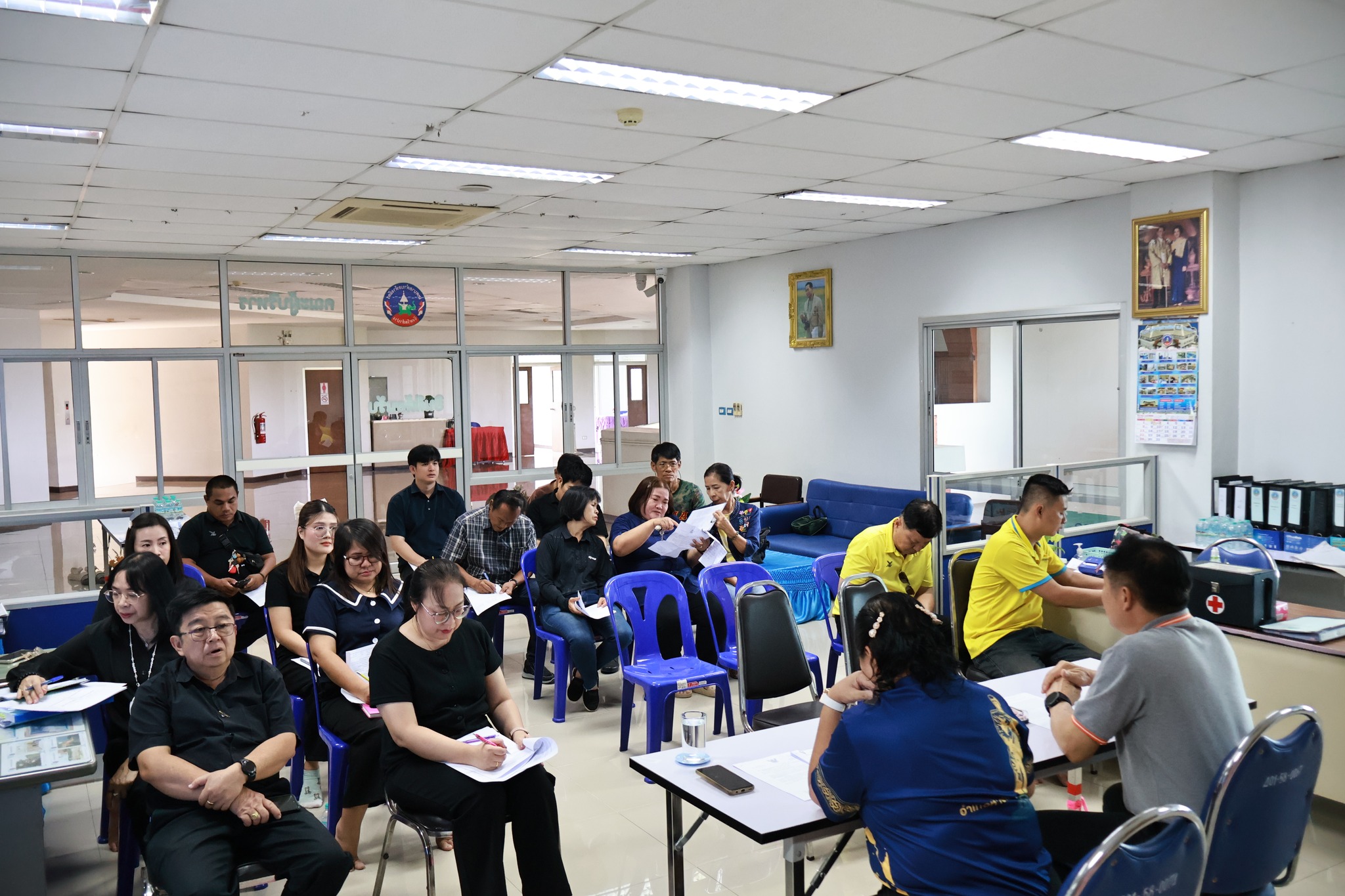 พร้อมด้วยหัวหน้าส่วนราชการ และเจ้าหน้าที่ที่เกี่ยวข้องเข้าร่วมประชุมอย่างพร้อมเพรียงกัน