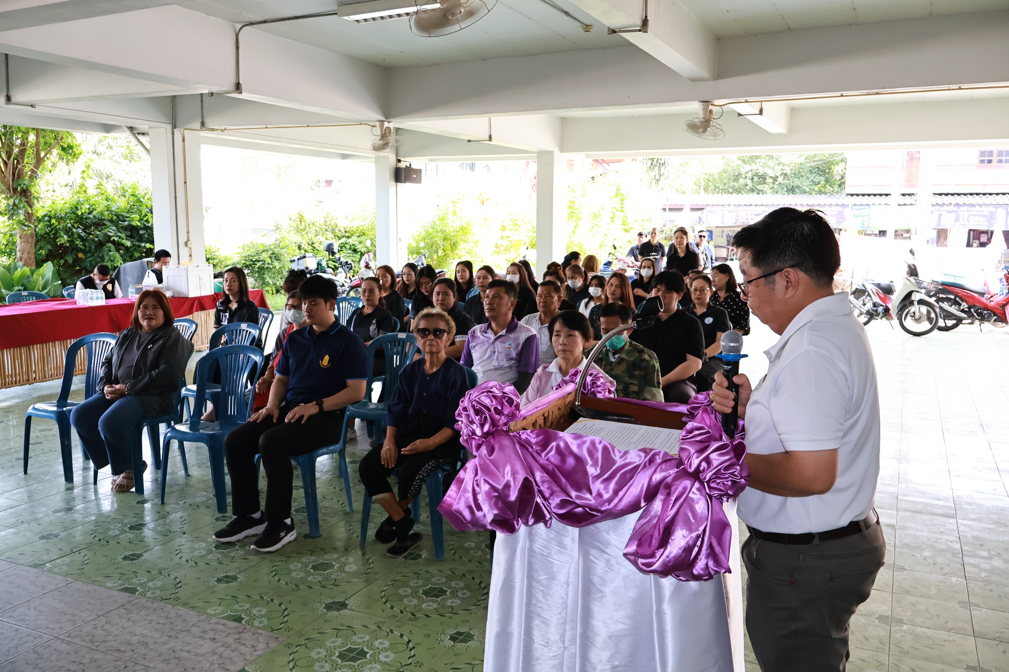 ภายในพิธีได้รับเกียรติจากคณะผู้บริหาร หัวหน้าส่วนราชการ เจ้าหน้าที่เทศบาล และประชาชนในเขตพื้นที่เข้าร่วมกิจกรรมอย่างพร้อมเพรียงกัน